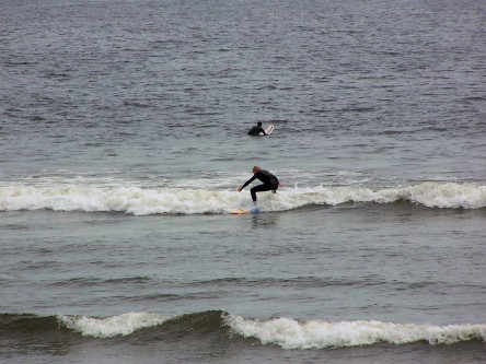 Surfer versuchen ihr Glück am Long Beach, leider fehlten die hohen Wellen.