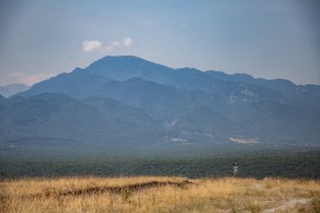 Wir checkten ohne Frühstück aus und fuhren in Richtung Thessaloniki davon. Ziel war der Olymp, den wir trotz seiner Höhe von fast 3.000 Metern wegen der Rauchwolke erst entdeckten, als er sich mehr oder weniger kurz vor uns aufbaute. Keine tolle Sicht, um auf einen Berg zu fahren. Zumindest war die Fahrt verhältnismäßig kurz und wir erreichten den Olymp nach nur 1 1/2 Stunden. Ich hatte bei Goolge Maps die alten Klöster und einen Wasserfall zur Besichtigung herausgesucht. |