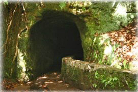 Danach tauchte der erste Tunnel auf, der nur 20 Meter lang und nicht weiter spektakulär war. Doch das änderte sich bereits nach ein paar Minuten, denn vor uns lag ein weitere Tunnel, der mit 200 Metern Länge schon etwas unheimlich schien (Foto rechts). Er war nicht nur stockfinster, sondern bestand größtenteils aus Pfützen und Schlamm und war zudem so niedrig, dass wir sehr gebeugt gehen mussten. Und unsere Taschenlampe, naja, die kleine Funsel hat's gerade so getan, dass wir zumindest unsere Köpfe nicht an der Decke anstießen. Das Licht reichte keinen Meter, die Batterien waren schon ziemlich am Ende. |